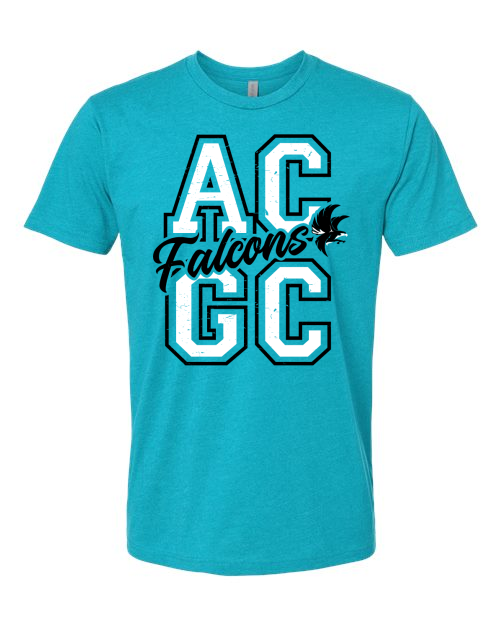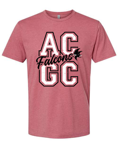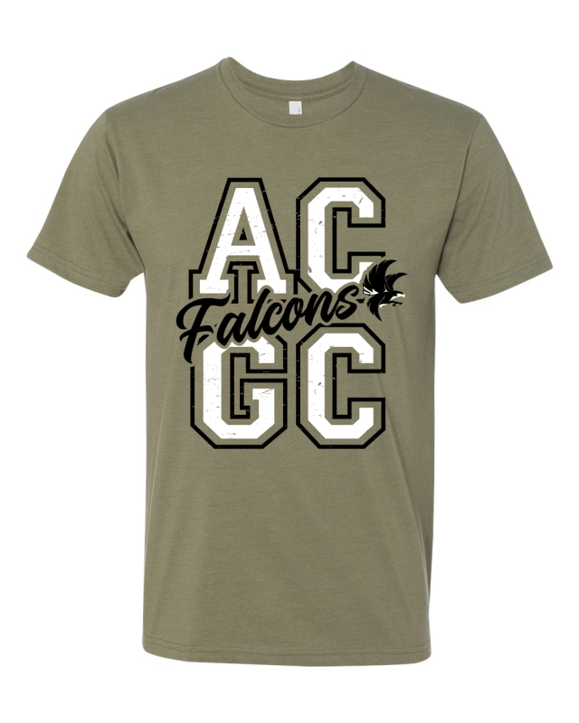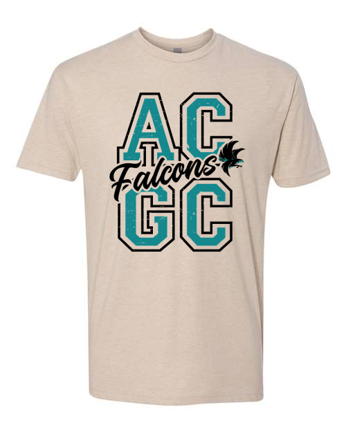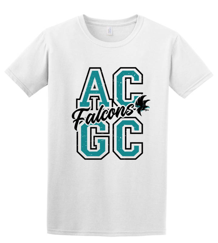 4.3 ounce 90/10% ring spun cotton tshirt, Seamless double-needle 3/4' neck, Taped neck and shoulders, Tearaway label, Semi-fitted, Rolled forward shoulders for better fit, Double-needle sleeves and hem. ACGC Falcons logo on full front.