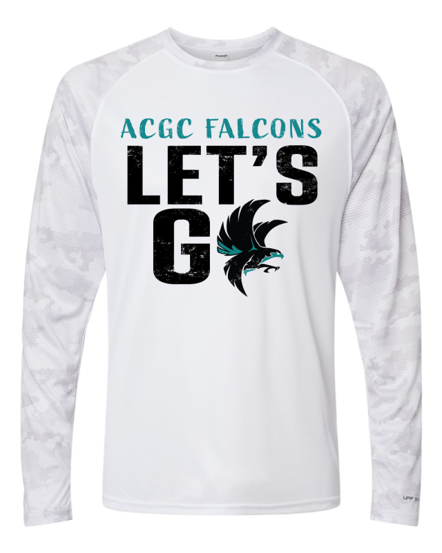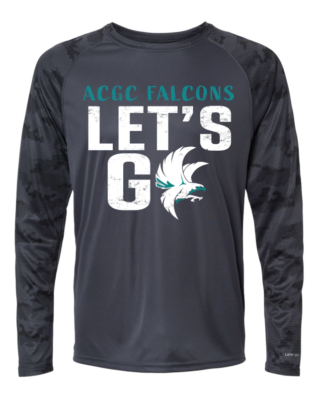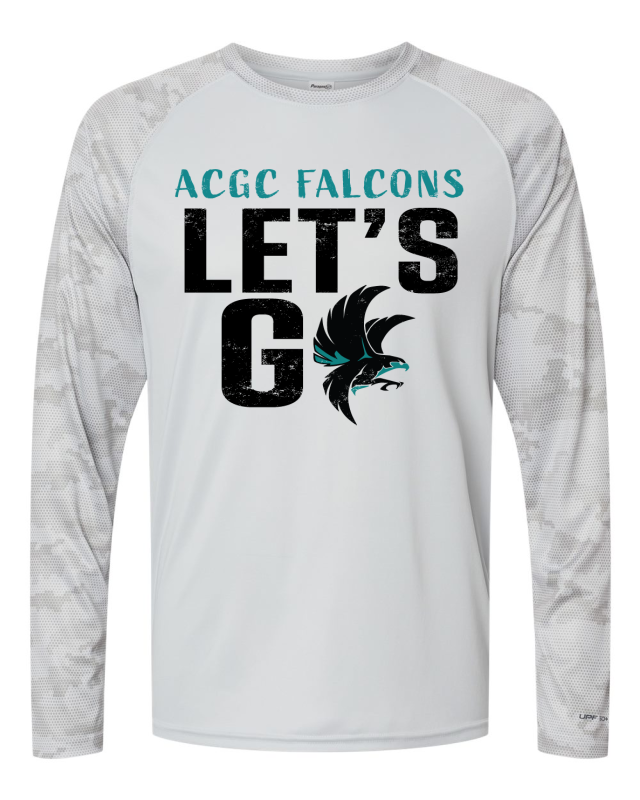 3.5 oz./yd², 100% microfiber performance polyester. Paragon Plus moisture management. Anti-microbial & wrinkle resistant finish. Sublimation friendly. UPF 50+ protection. Tear away label. ACGC LET'S GO logo on full front.