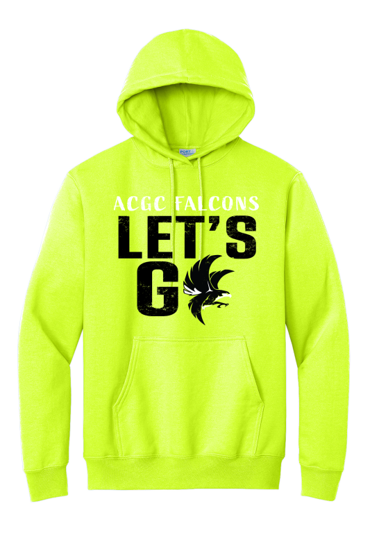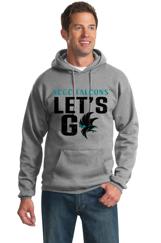Nothing is better for relaxing than our 9-ounce favorite at a budget-friendly price. 9-ounce 50/50 cotton/poly fleece Air jet yarn for softness Front pouch pockets. ACGC LET'S GO logo on full front.