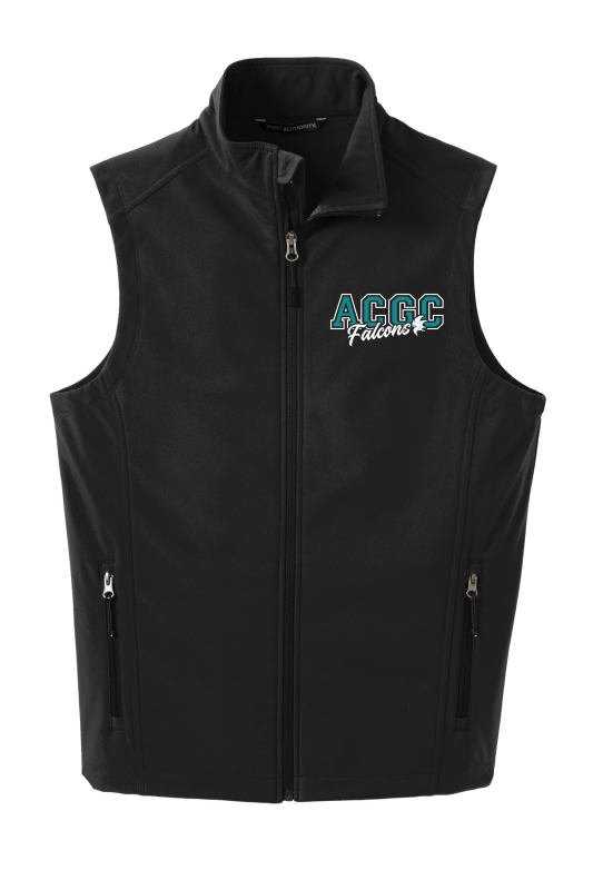 Keep your core warm and protected from the elements in this versatile vest that's easy on the budget. 100% polyester woven shell bonded to a water-resistant film insert and a 100% polyester microfleece lining 92/8 poly/spandex woven shell bonded to a water-resistant film insert and a 100% polyester microfleece lining (Heathers) 1000MM fabric waterproof rating 1000G/M2 fabric breathability rating Wind-resistant and water-repellent Reverse coil zippers Zip-through cadet collar with chin guard Front zippered pockets Open hem. ACGC Falcons logo on left chest.