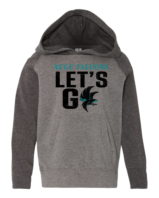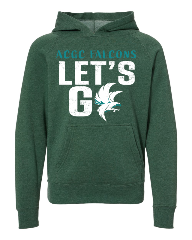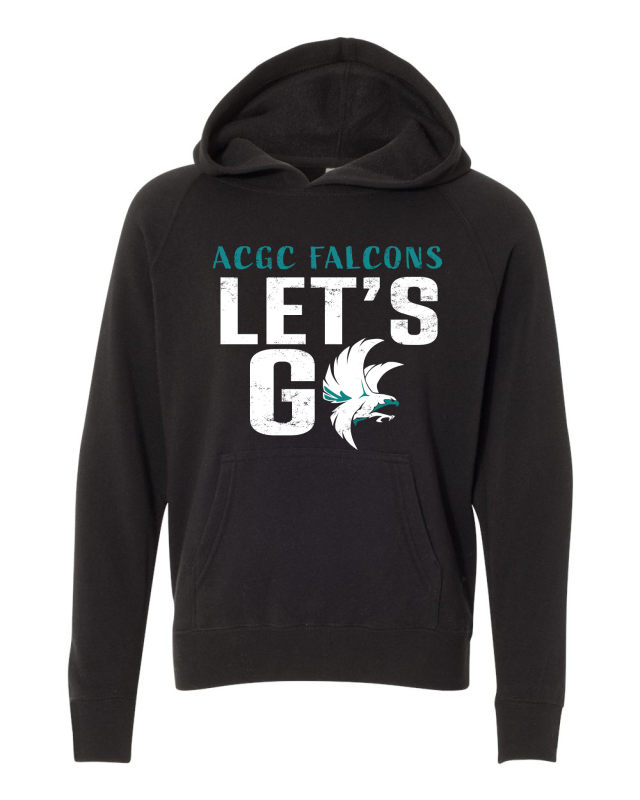 Independent Trading Co. Youth 6.5 oz., 52/48 cotton/polyester youth hooded sweatshirt, 32 singles, Raglan sleeves, Unlined hood, 1x1 ribbed neck, cuffs and waistband, Twill neck tape, No drawcord, ACGC LET'S GO logo on full front.