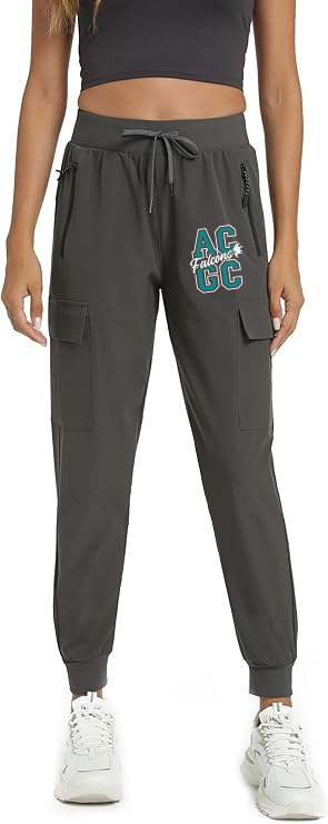 Waistband Fabric: 80% Polyester, 20% Spandex; Main Fabric: 100% Polyester. Versatile Pockets: These Women's Hiking Pants with Four Pockets, Including Two roomy Zippered Pockets and Two large hook-and-loop side pockets. The Deep Side Zippered Pocket Is Ideal for Safely Storing Your Essentials When You're Go. Don’t Worry No Stretchy: Say Goodbye To Didn't Fit Pants! These Women's Pants an Adjustable Drawstring on the Waist And Stretch Cuffs on The Legs, Ensuring a Perfect Fit for Any Body Shape. And the Elastic Waistband Cuffs Keep Insects Out. Light Weight, Comfy And Quick Drying:The Stretch Fabric Is Soft Breathable and Water Resistant. These joggers pants for women are lightweight yet not too thin, fit but not too tight. ACGC Falcons logo on upper thigh.