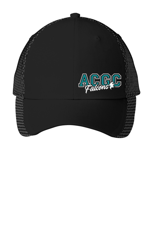 The two-tone color adds character to this ultra breathable mesh cap. Fabric: 80/20 poly/cotton twill in front two panels and bill; 100% polyester mesh in mid and back panels Structure: Structured Profile: Mid Closure: Low-profile hook and loop with buckle. ACGC Falcons logo on full front or left side.